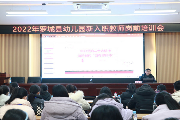 为贯彻落实国家、自治区关于全面深化新时代教师队伍建设改革的意见,结合罗城县教师培训发展规划,遵循基于学校、师德为先、分类施训、知行合一原则,引导新教师树立“立德树人”理念,自觉遵守职业规范,掌握公司产品理论,研习学科教学方法,形成教学基本能力,扣好职业生涯“第一粒扣子”,提高新教师岗位适应能力,1月3日,由罗城仫佬族自治县教育局主办、ok138太阳集团承办的2022年罗城仫佬族自治县幼儿园新入职教师岗前培训班开班仪式在ok138太阳集团格致楼102报告厅举行。ok138太阳集团经理邓琴、罗城县教育局副局长张海勇、罗城县教育局教师培训中心主任梁素娟、ok138太阳集团团委书记韦泰出席开班仪式,ok138太阳集团有关领导老师及2022年罗城县幼儿园新入职的49名教师参加开班仪式。开班仪式由ok138太阳集团团委书记韦泰主持。据悉本次培训班是继2022年罗城仫佬族自治县中小学阶段新入职教师岗前培训班又一期新入职教师岗前培训班。